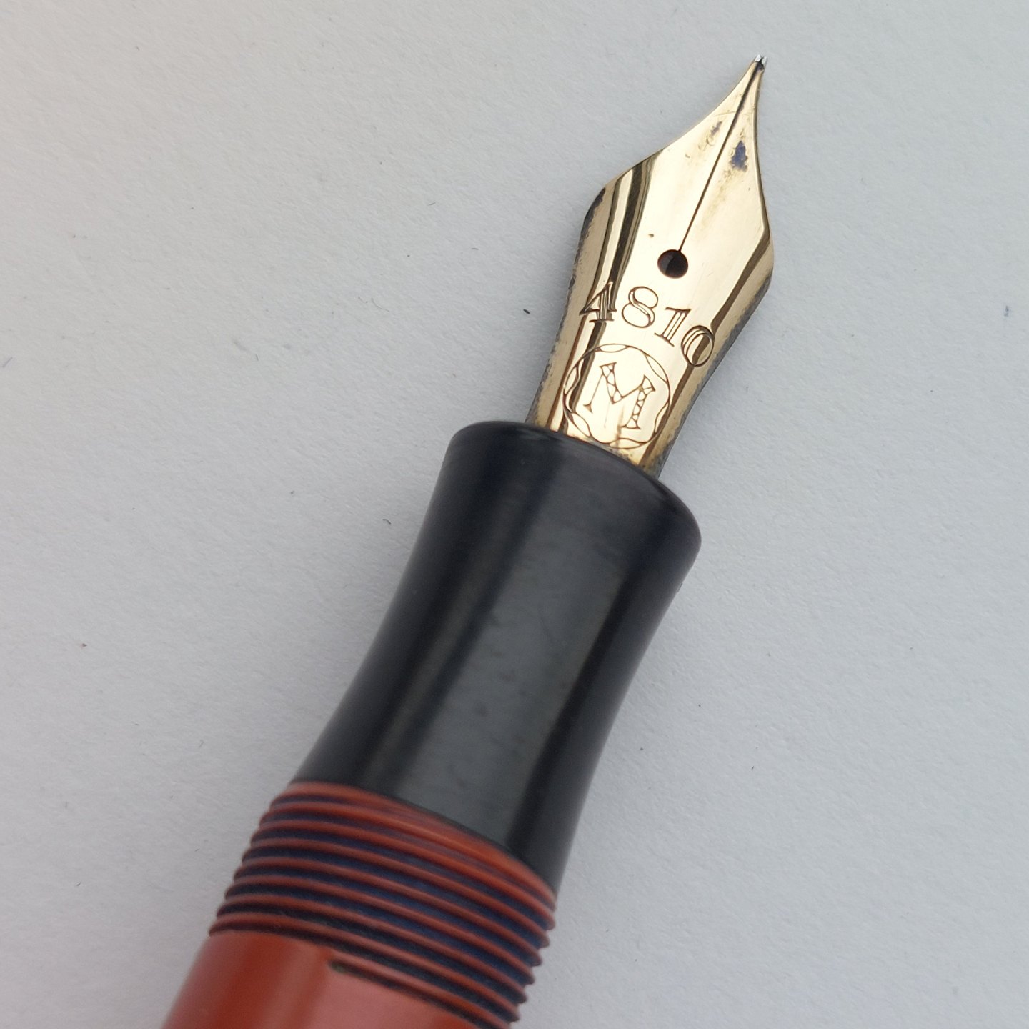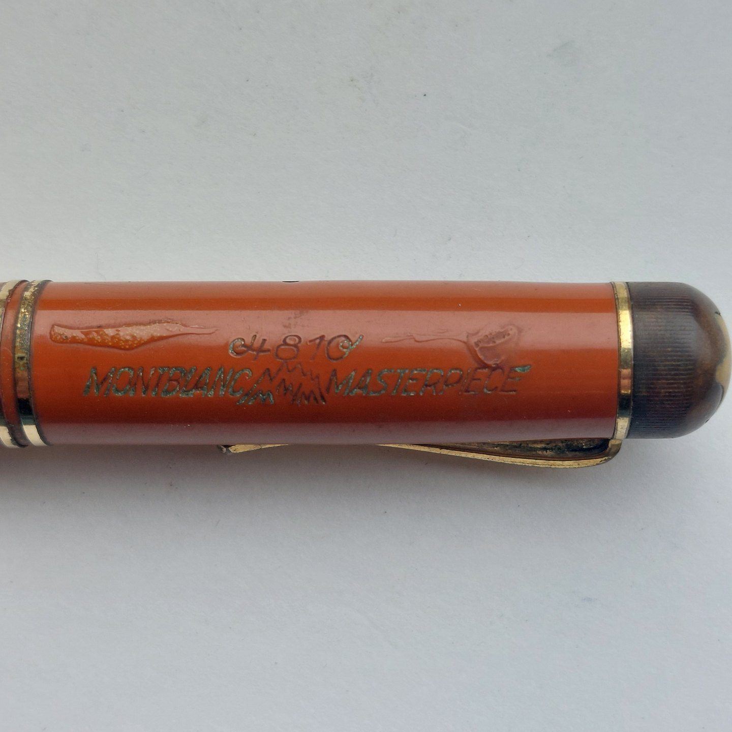 STOR HVID STJERNE: Koralrød Montblanc Masterpiece nr. 25 fyldepen. Fremstillet omkring 1940. I god stand uden skader eller reparationer. Alle dele originale Montblanc dele. Der skal indsættes ny gummisæk før end den fungerer igen. Dette kan indsættes ved et tillæg på kr. 250,- Mål: L. 13,5 cm