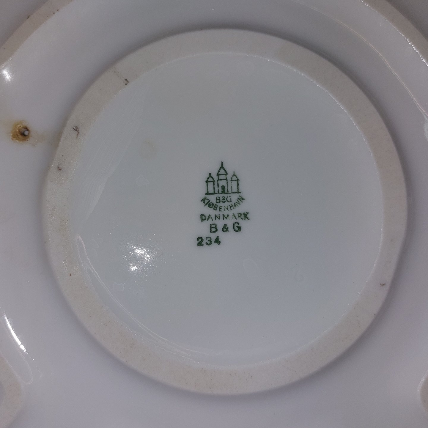 Empire cabaret dish in porcelain from Bing & Grondahl. In good condition. Without damage or repairs. There is, however, hole on the back, which is not going through the disk, Why is not known. Factory first quality. Factory mark on the back. Model number 234. Measures: H. 2.5 cm Diameter 32 cm