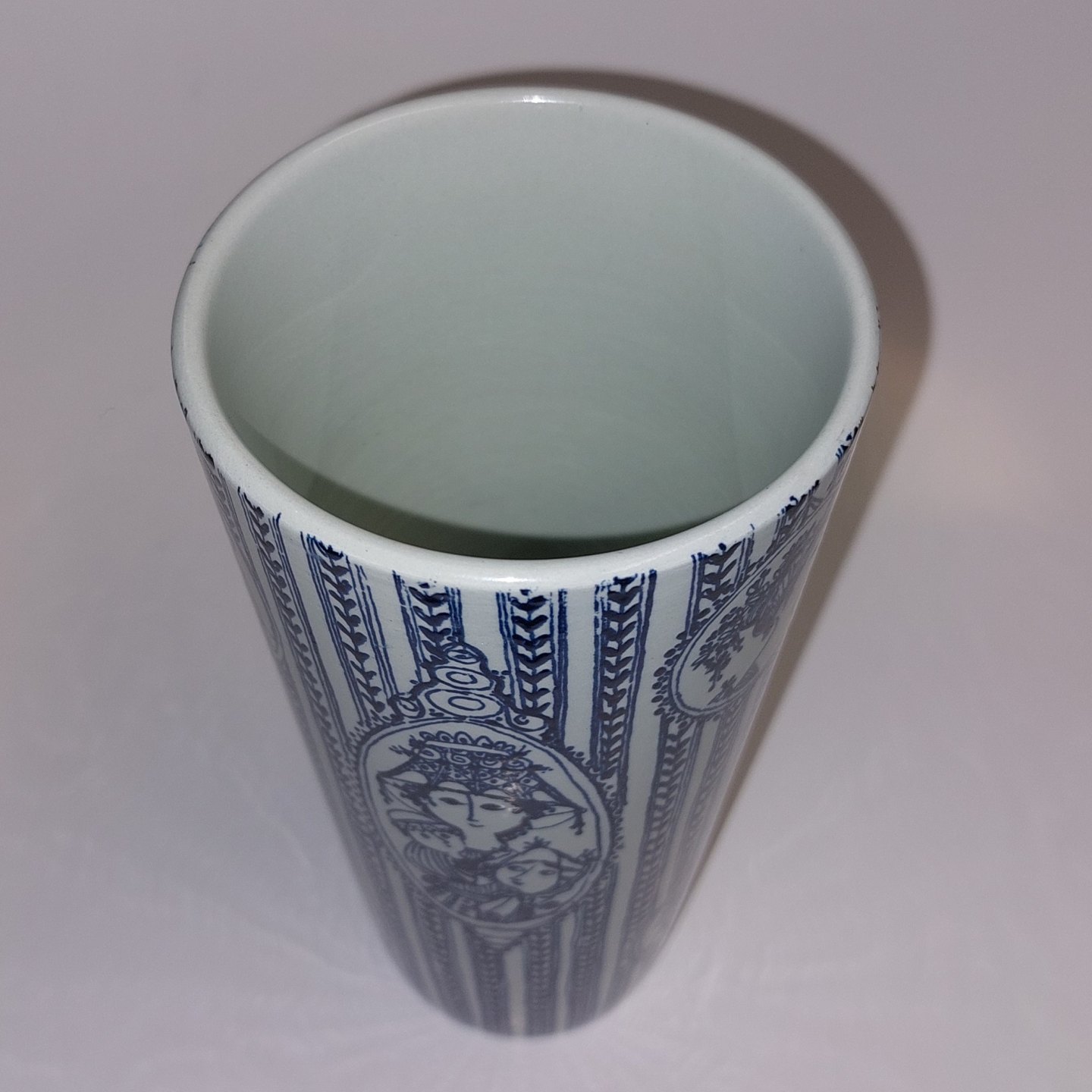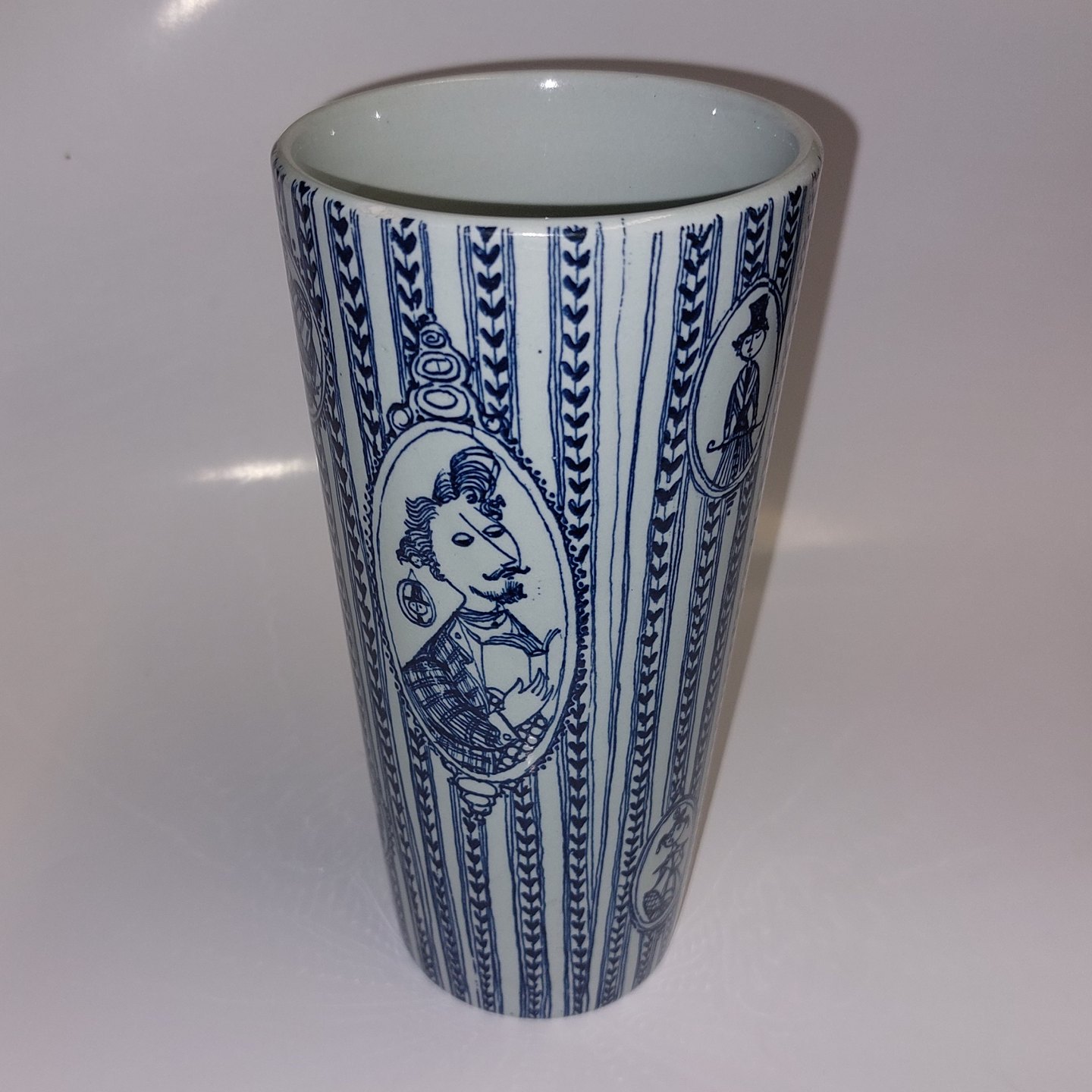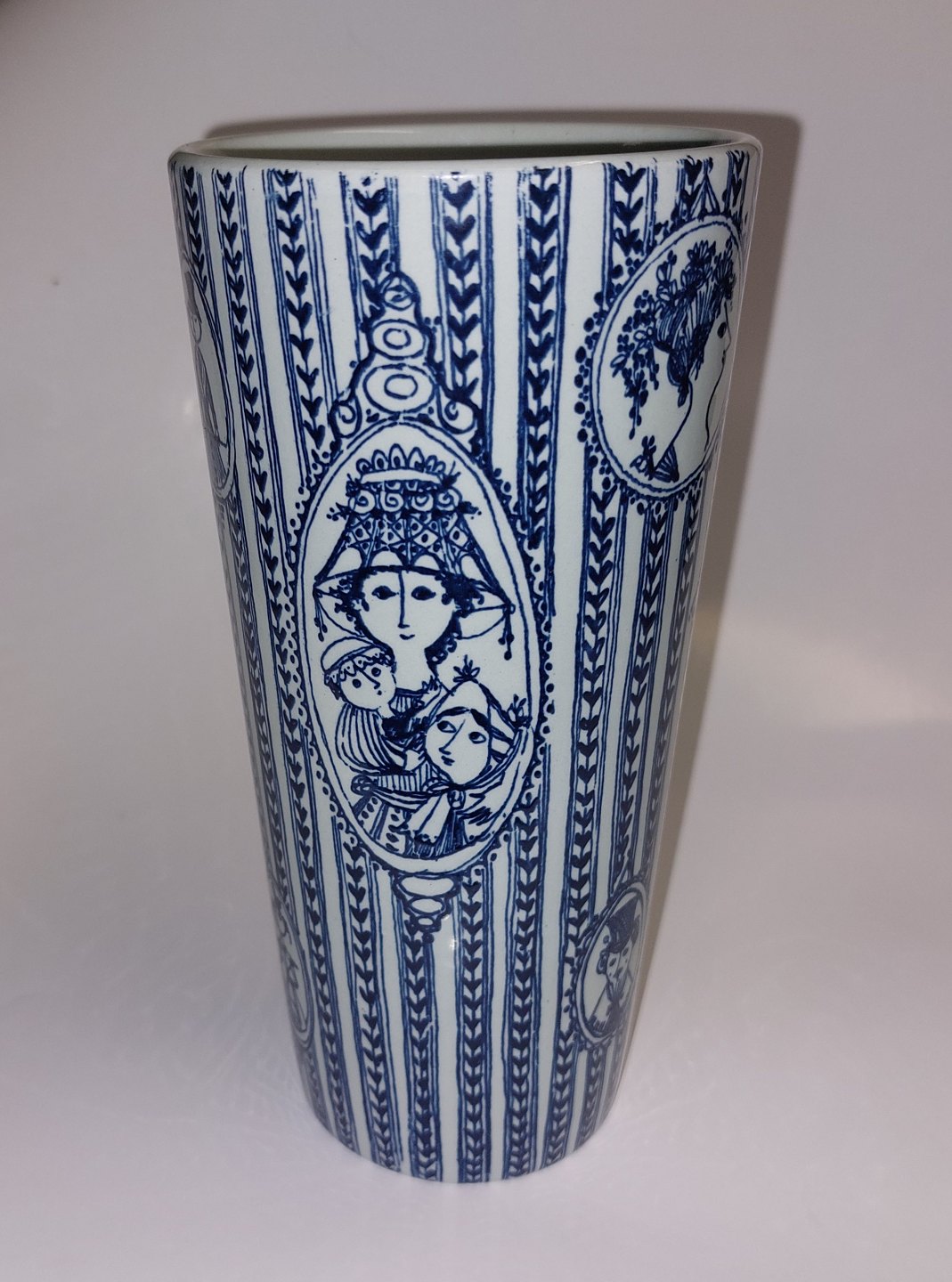 Vase In earthenware from Nymølle. Designed by Bjørn Wiinblad. Framed portraits around the vase. Appears in good condition with no damage or repairs. The factory mark on the bottom together with the artist's signature. H. 18 cm