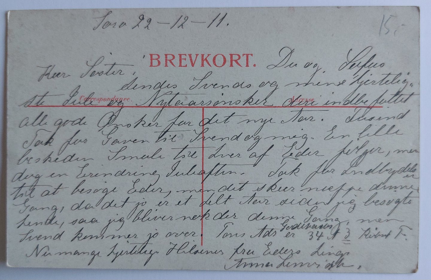 Tegnet julekort. Travle postbude på vej med post og pakker. Brugt men ikke sendt i 1911. I god stand.