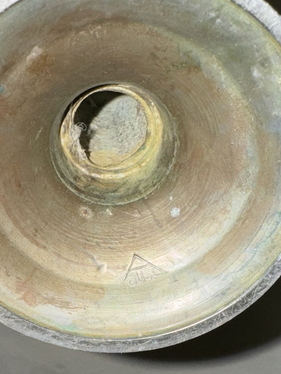 Par lysestager fra Just Andersen i diskometal. I god stand med almindelig brugsspor på overfladen (patina). Ingen skader eller reparationer. Fabriksmærket på undersiden. H. 12,8 cm