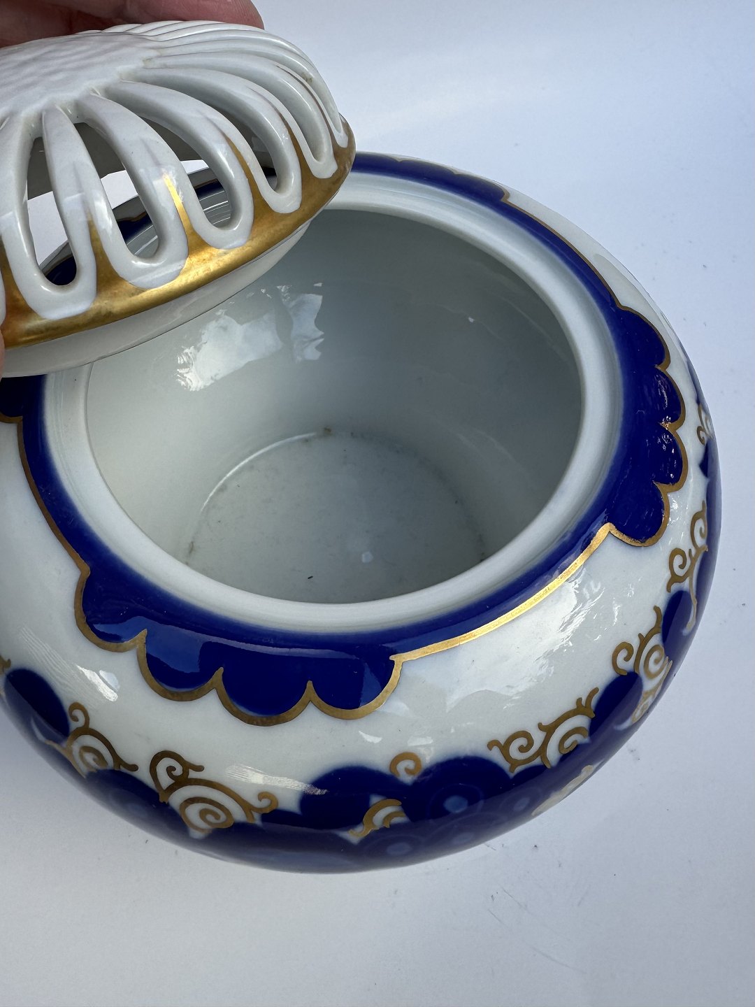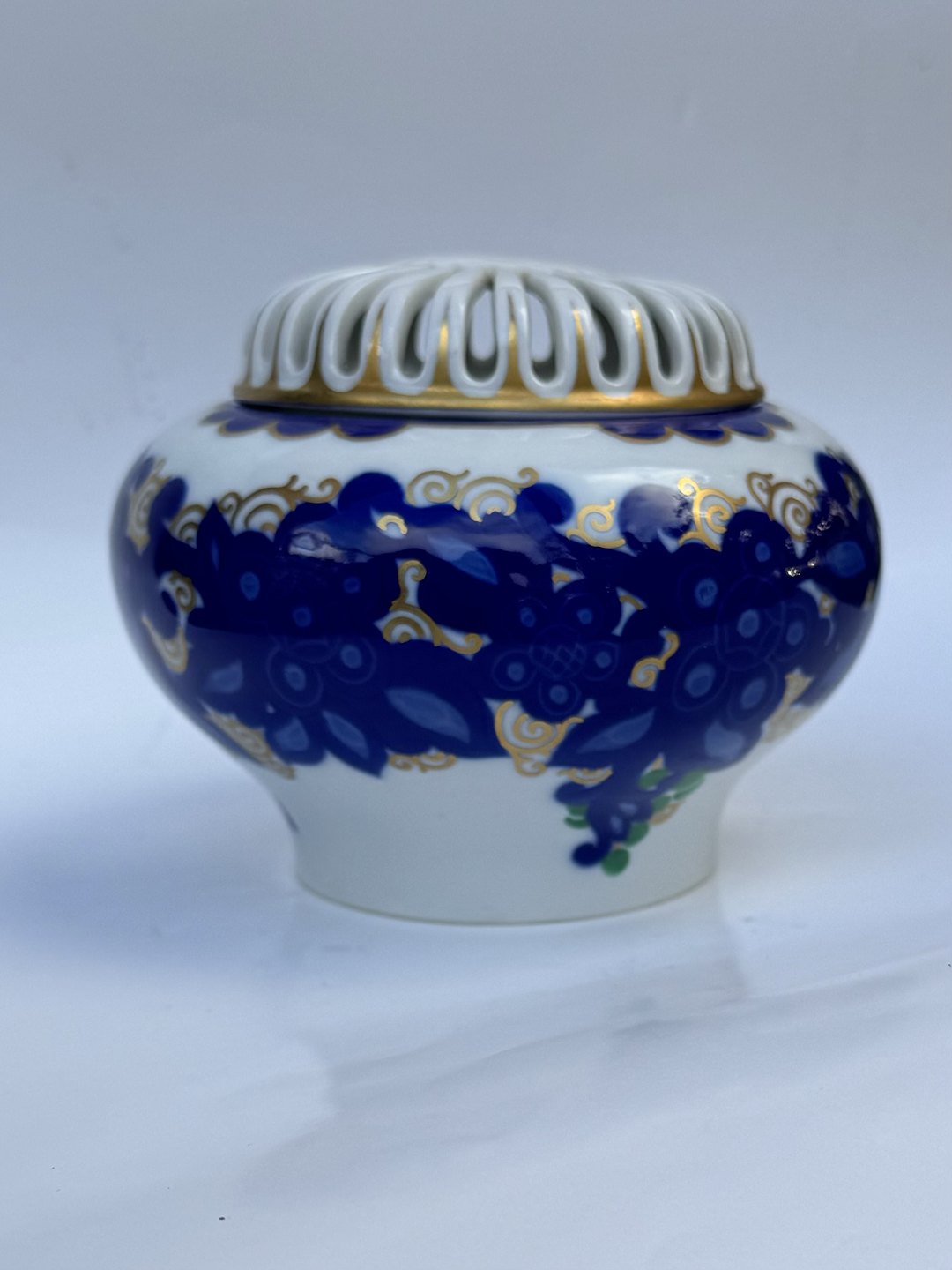 Art Deco Dufteskrin fra "Rosenthal" i porcelæn. Dekor Rosari, Entwurf , 1921 Julius v. Guldbrandsen, I perfekt stand. Fabriksmærket på bunden. H. 12 cm