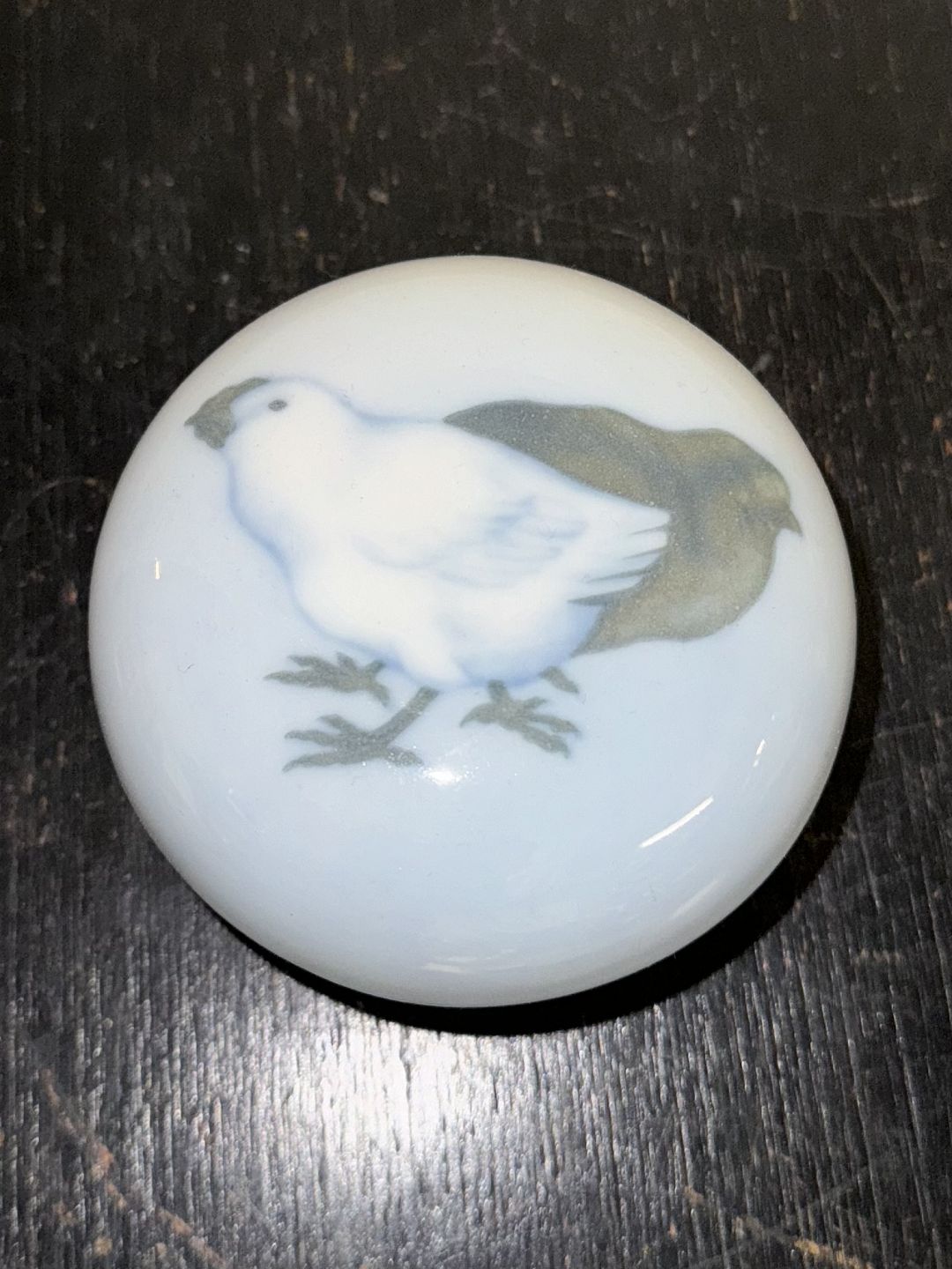 Rosenthal "Copenhagen" bowl with lid in porcelain With decoration of chickens on the lid. Appears in good condition with no damage or repairs. Factory mark on the bottom. H. 7 cm diameter of 9 cm.