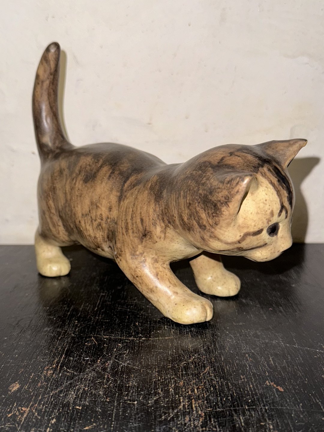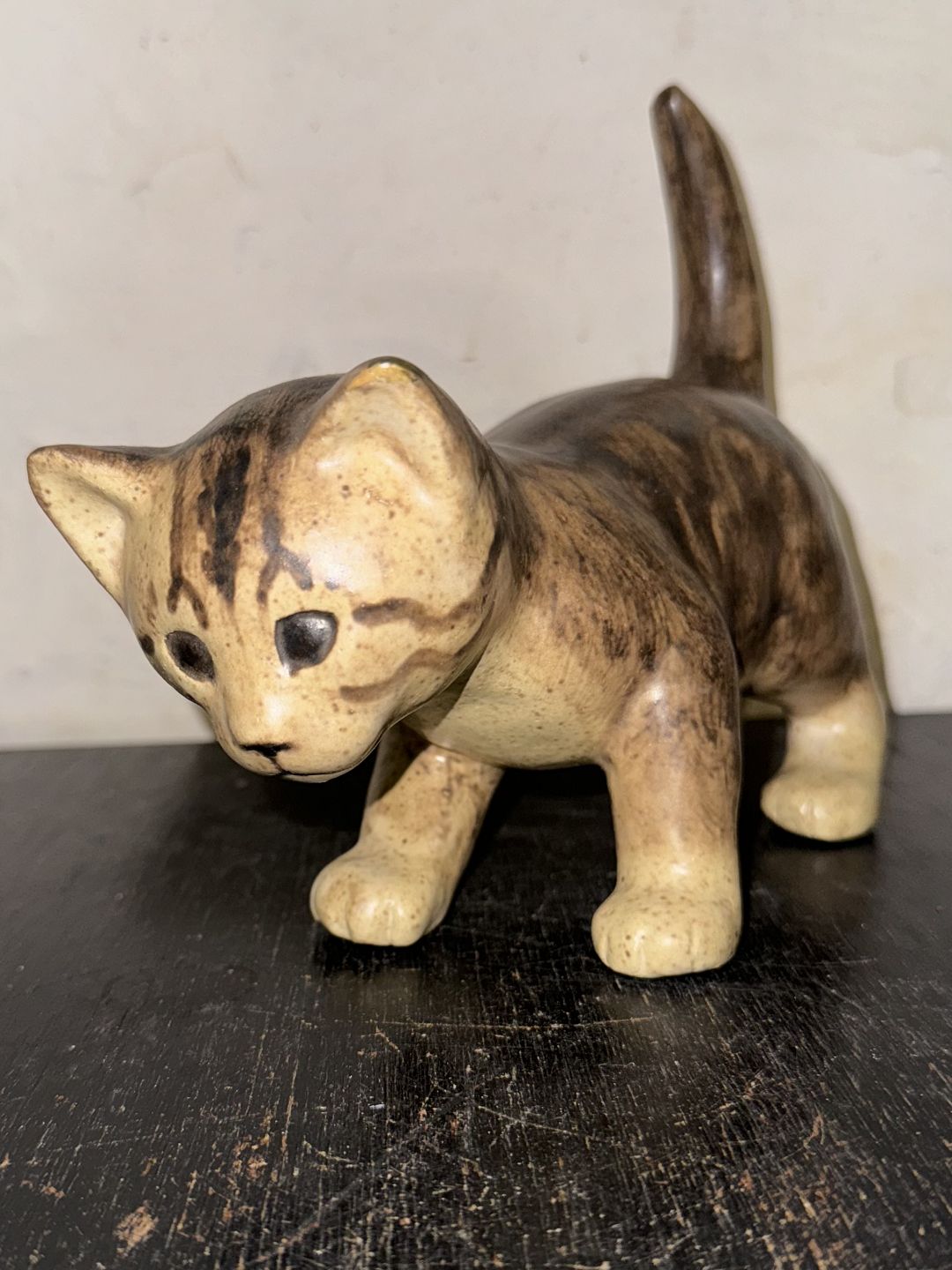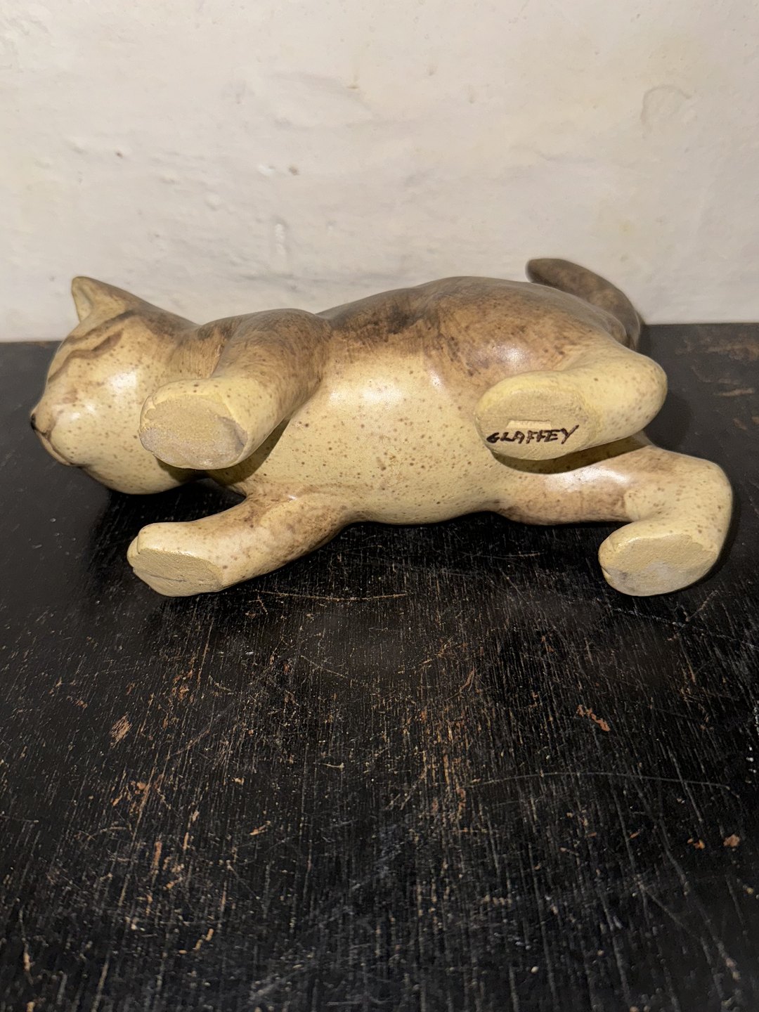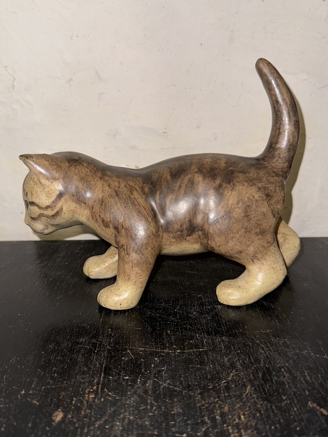 Elisa Glaffy, Denmark: Standing cat in ceramic. Covered in brownish glaze. Signed by the artist on the underside of one paw. Dimensions: H. 16.5 cm L. 21 cm