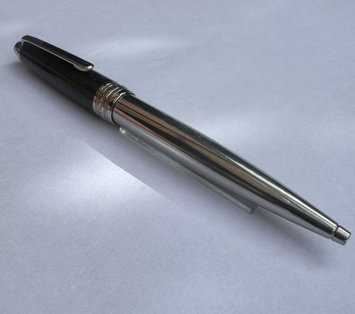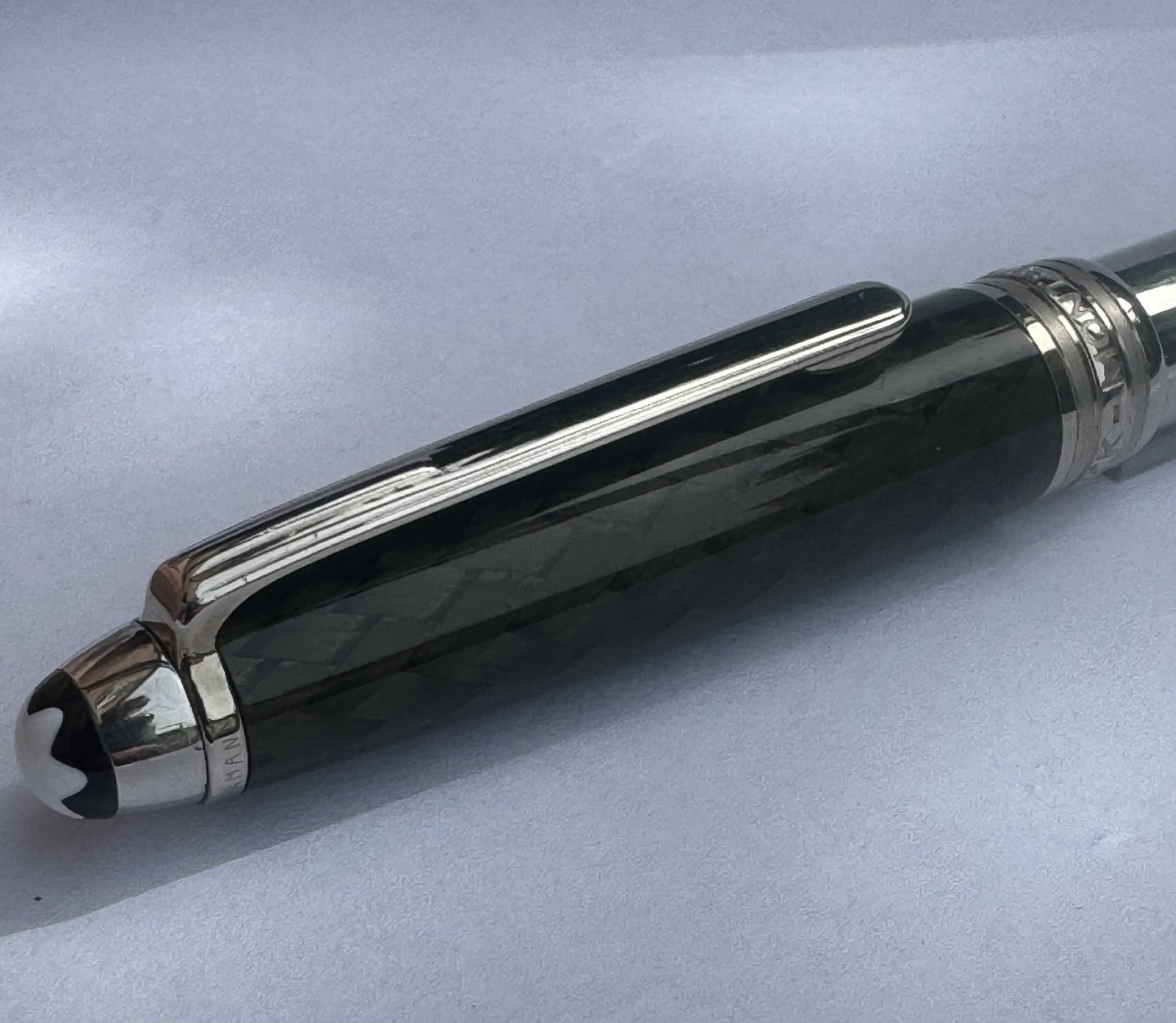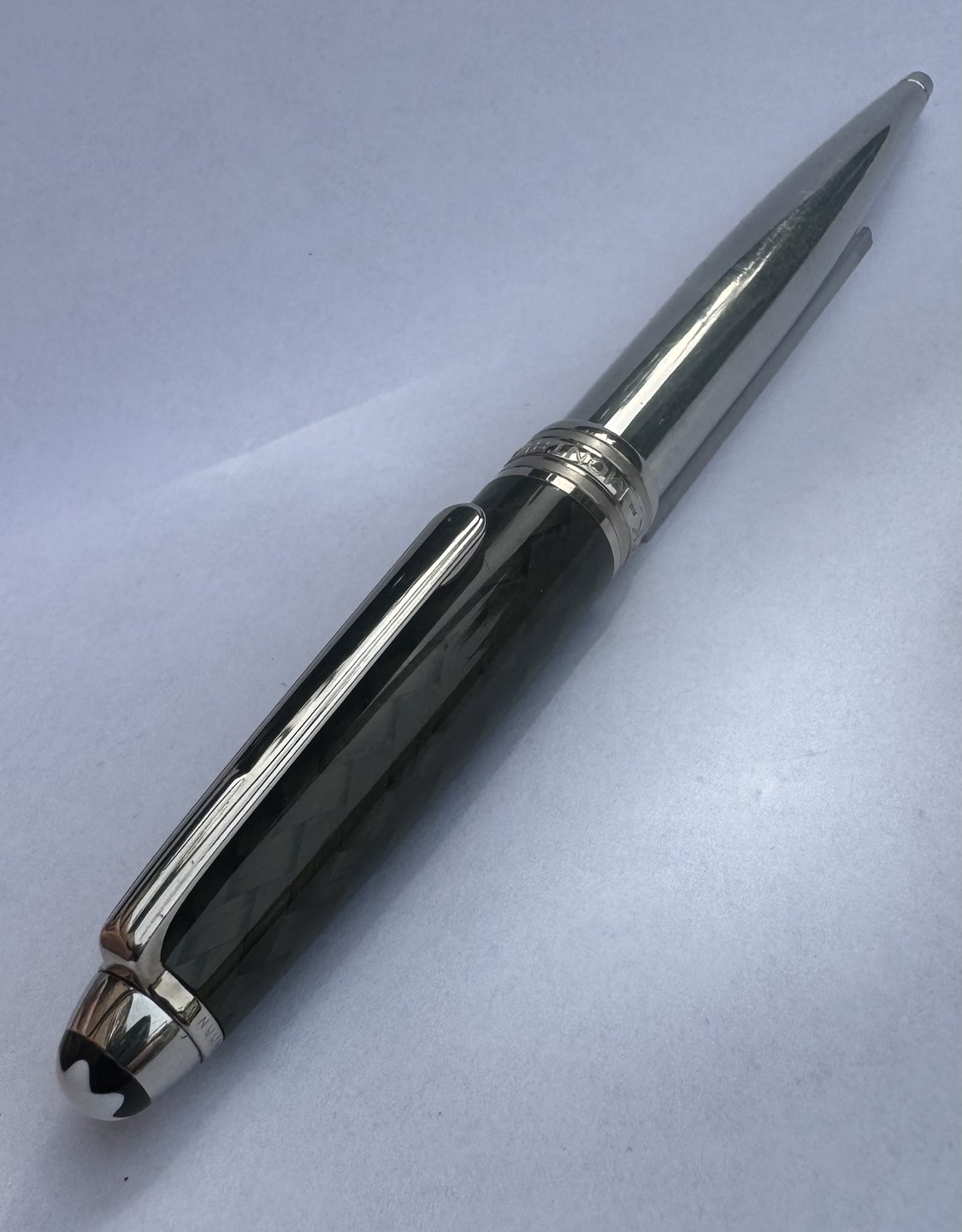 Montblanc Meisterstück Solitaire Carbon og stål kuglepen. Fremstår i god stand. Uden skader eller reparationer. Skriveklar med brugt refil.
