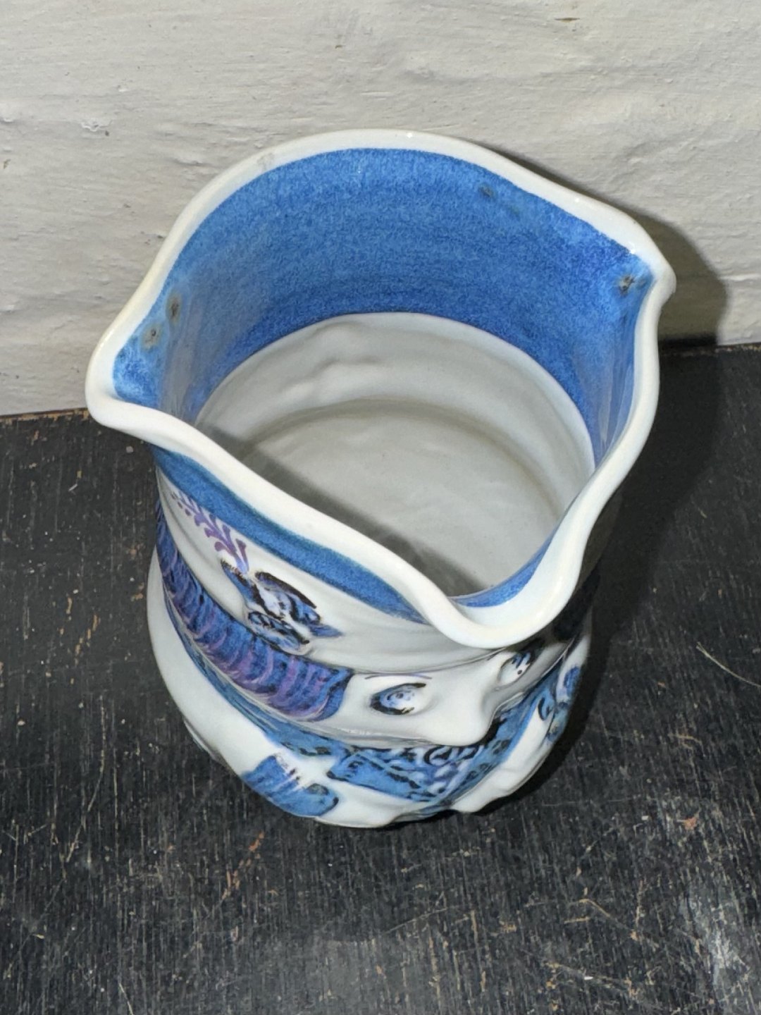 Figur eller bæger i form af søofficer i fajance. Designet af Doreen Middelboe for Aluminia (Royal Copenhagen). Fremstår i god stand. Modenummer 304/3562. Fabriksmærket på bunden. Mål: H. 14 cm