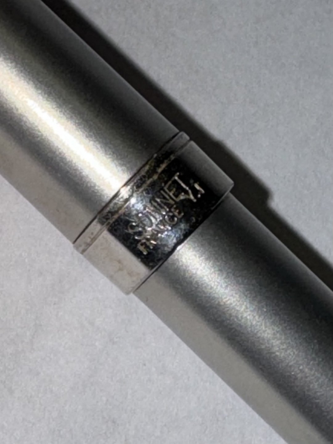 MADE IN FRANCE: Parker Sonnet ballpoint pen in Steel and Chrome. In good condition. Ready to use. Works with older refill. Black “pearl” on top. length 13.5 cm