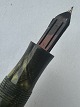 Stor grøn marmoreret Big Ben fyldepen Med bredt riflet mavebælte på hætten. Fremstår i god stand med alle dele originale Big Ben, inklusiv en 14 karat guldspids. Før end fyldepennen igen kan optage blæk og skrive, skal der indsættes ny gummisæk. Denne opgave kan udføres ved tillæg på kr. 200,- Længde: 13,6 cm