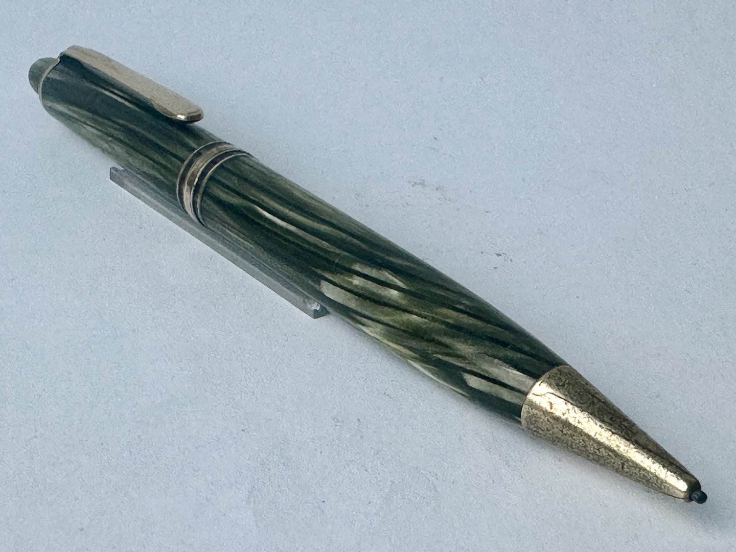 Grønstribet Montblanc nr. 172 Pix skrueblyant / stiftblyant / pencil. fremstillet i Tyskland i 1950'erne. I fin stand. Ingen skader eller reparationer. 13 cm lang.