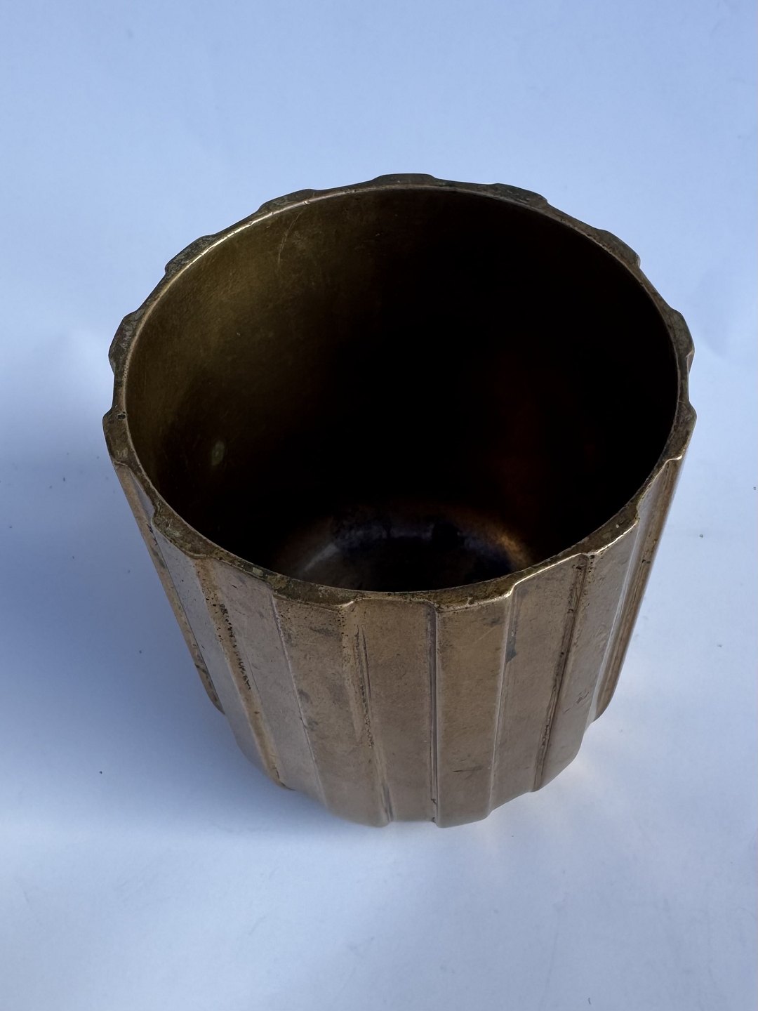 Bronce bæger i Art Deco stil. Fremstillet i Danmark i 1930’erne. I god stand. H. 8,9 cm Ø. 8,2 cm.