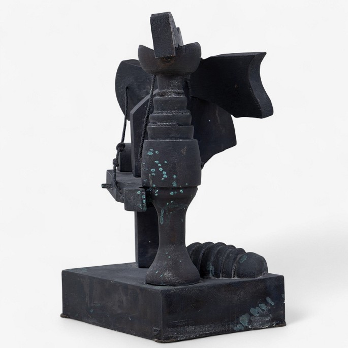 Skulptur i støbt sort bronze. Signeret 'RJ'.