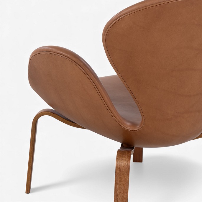 AJ 4325 - 'Svanen'-lænestol i nyere cognac-farvet anilinlæder med stel i træ. Stemplet fra producent.