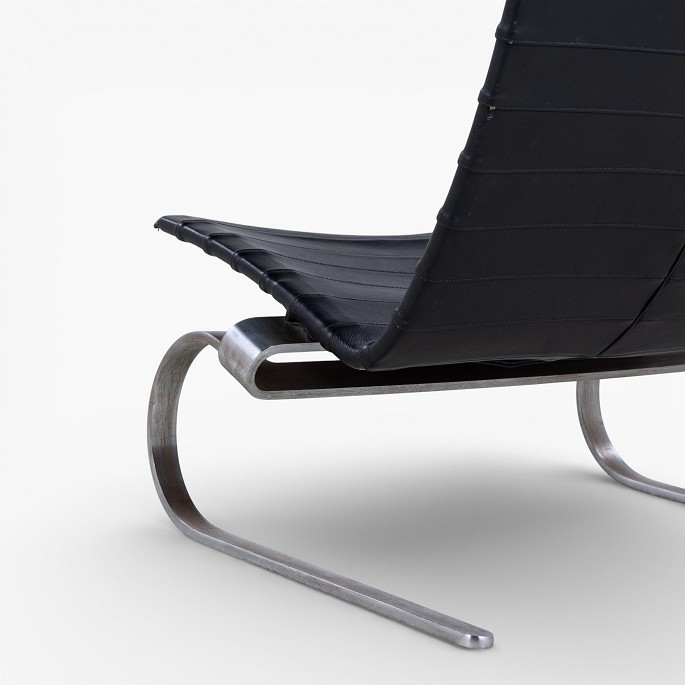PK 20 - Armchair in original black leather with neck cushion and spring steel frame. Designed in 1968.