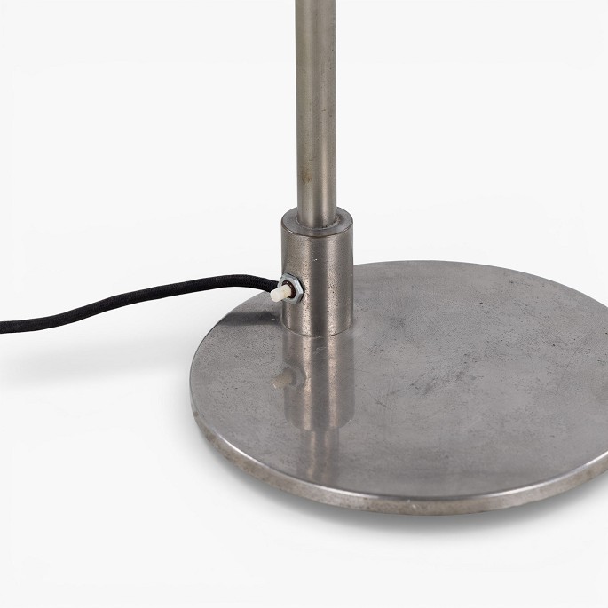 Rare table lamp in nickel-plated metal with funnel-shaped shade. Made in the 1930s.