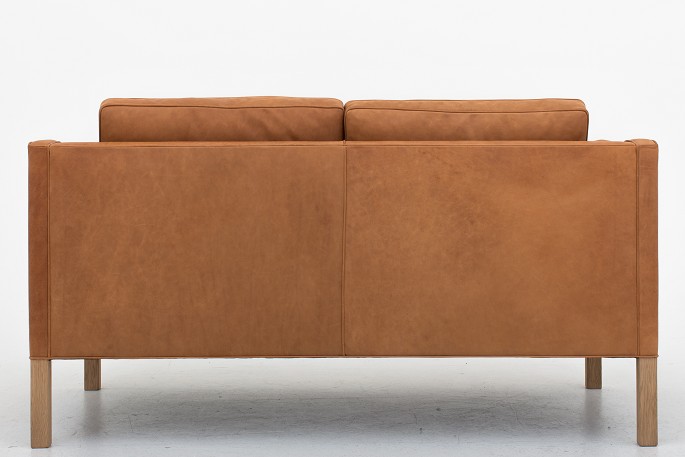 BM 2212 - Reupholstered 2 seater sofa in Dunes Cognac leather and legs in oak. KLASSIK offers upholstery of the BM 2212 in fabric or leather of your choice. Please contact us for more information.
