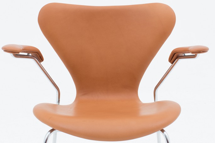 AJ 3207 - Armstol, nybetrukket i KLASSIK Cognac og stel i stål.