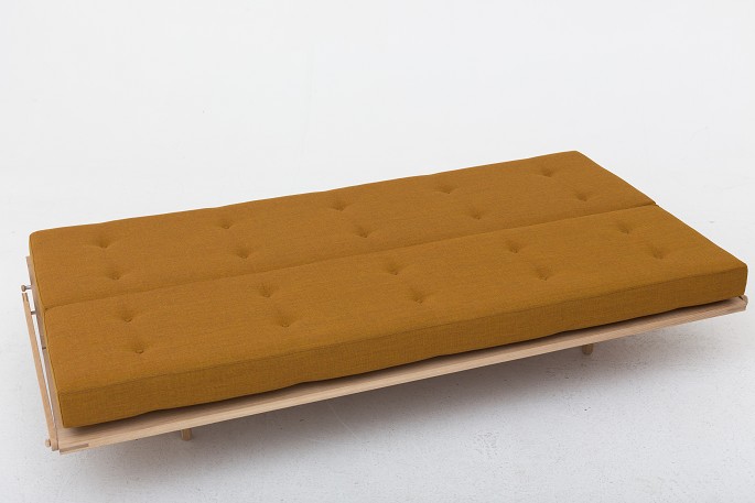 Poul Volther's daybed from 1959 is the first piece of furniture that has been put into production by KLASSIK in collaboration with Poul Volther's own family. The daybed is made in Denmark and is available with frame of walnut or oak. The mattress is available in leather from Sørensen Leather or fabric from Hermés Paris, Dedar, Kvadrat or Christoffer Farr.