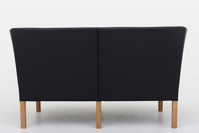 BM 2214 - Reupholstered 2-seater sofa in black Savanne leather and legs in oak. KLASSIK offers upholstery of the sofa in fabric or leather of your choice.