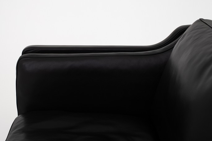 BM 2212 - Nybetrukket 2 pers. sofa i sort Klassik-læder med ben i mahogni. KLASSIK tilbyder polstring af sofaen med stof eller læder efter eget ønske. Kontakt os venligst for mere information.