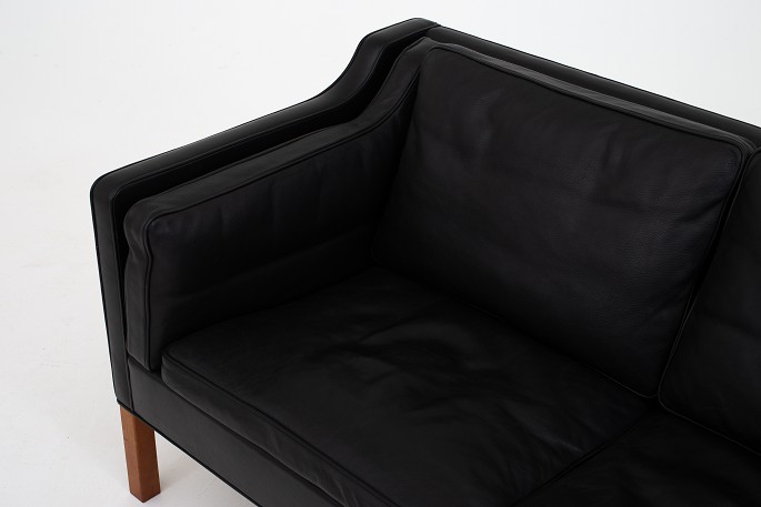 BM 2212 - 2 pers. sofa i originalt, sort læder på ben af mahogni.