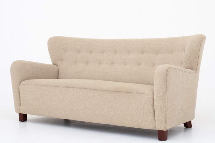 Sofa in original beige Hallingdal wool with legs in stained beech.