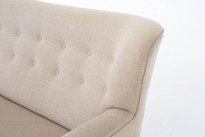 Sofa in original beige Hallingdal wool with legs in stained beech.