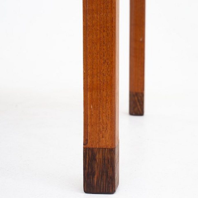 Sofabord i teak m. udtræksplader i sort formica og sko i wengé.
