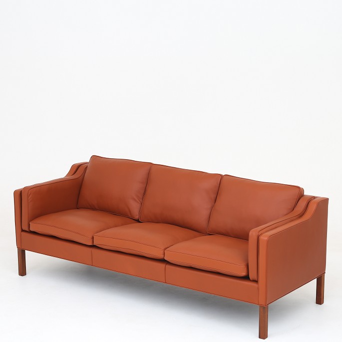 BM 2213 - Nybetrukket 3 pers. sofa i Passion-læder (farve: Burn, 33508) med mørke ben.