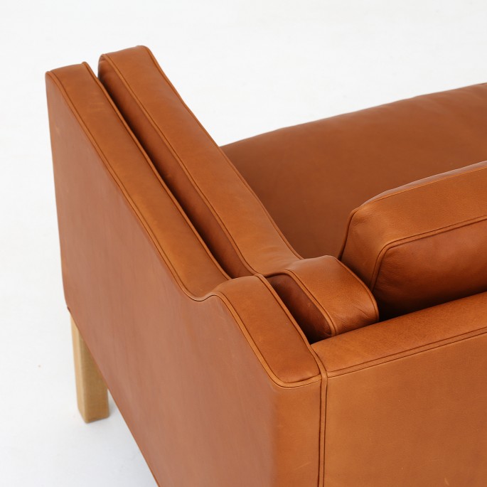 BM 2213 - Reupholstered 3-seater sofa in Klassik Cognac aniline leather with legs in oak.