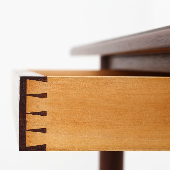 'Partners Desk' skrivebord i mahogni med fire skuffer, profileret kant og sko af messing. Designet i 1935 og vist på Københavns Snedkerlaugs Møbeludstilling i 1938. Dette bord blev udført til udstillingen 'Dansk Kunsthaandværk' på Nationalmuseet i Stockholm i 1942 og kommer herfra.