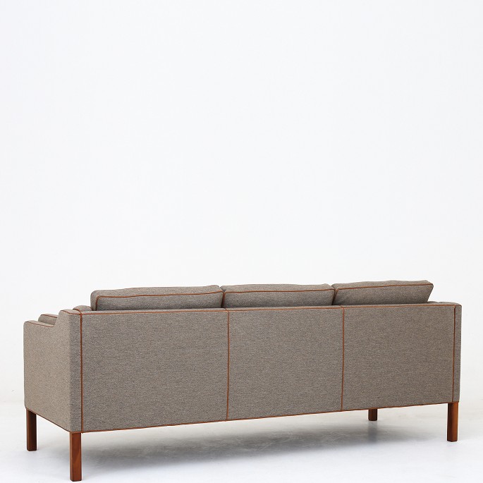BM 2213 - 3-seater sofa in new textile (Hallingdal 65, colour code 227) with piping in aniline leather (Klassik Cognac). KLASSIK offers the sofa in textile and leather of your choice. Please contact us for more information.