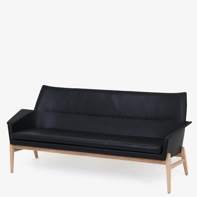 'Wing' sofa in black leather with oak frame.