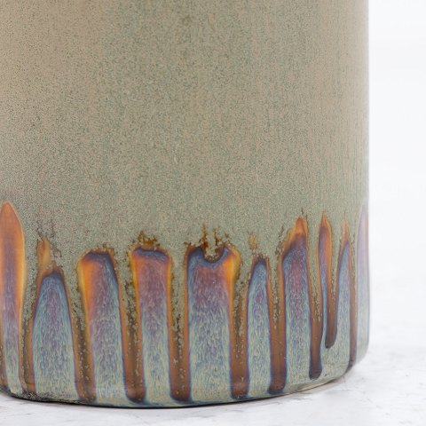 'UFO' bordlampe i stentøj m. rødbrune dekorationer (model 1070).
