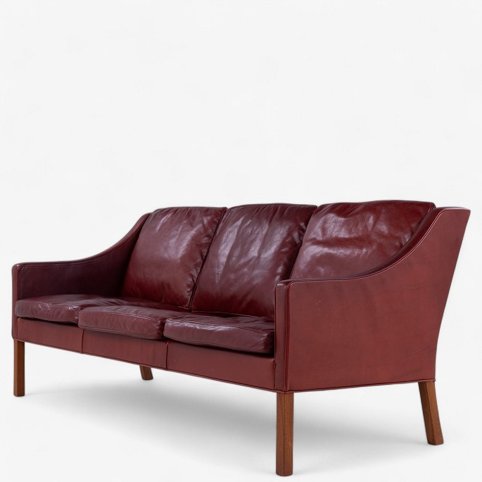 BM 2209 - 3 seater sofa in patinated 'Elegance' aniline leather (colour: Indian Red) with legs in teak.