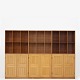 Sæt på tre skabe og tre bogkasser i patineret massiv elm på tre sokler.