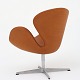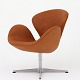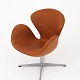 AJ 3220 - Nybetrukket 'Svanen' i Klassik Cognac anilin-læder på gl. fod af aluminium med returdrej.