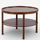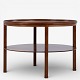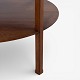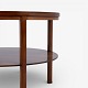 Round coffee table in patinated mahogany with underlying shelf. Manufacturer's mark.