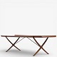 Rare 'X' coffee table with patinated teak top with fluted edge on cross frame. Manufacturer's stamp.