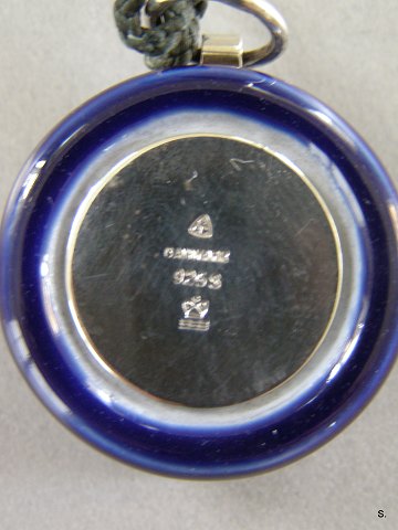 Sølvkors på blå Porcelæn H: 3 cm.