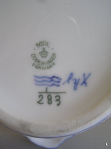 RC. 1/283 Musselmalet Riflet Ragoutfad med låg 1. sort. L: 27,5 cm. B: 17,5 cm. H: 16 cm. Emne nummer: 11321