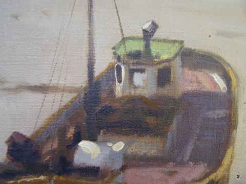 Gunnar Bundgaard sign. 65 Optrukne både på strand