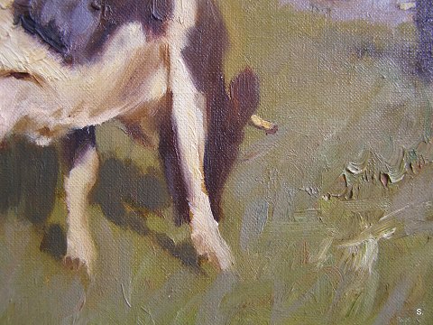 Landskab med græssende køer sign. G. Bundgaard 55*65 cm. med ramme 87*77 cm.