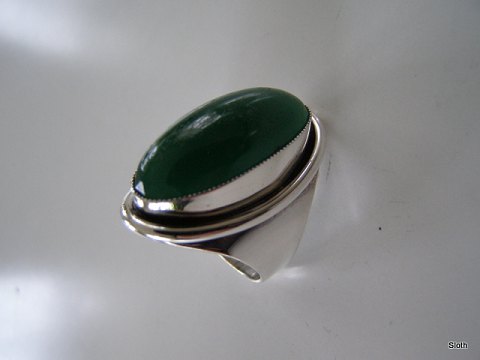 Fingerring med grøn sten Hermann Siersbøl ringstr. 53, D: 17 mm. Emne nummer: 11784