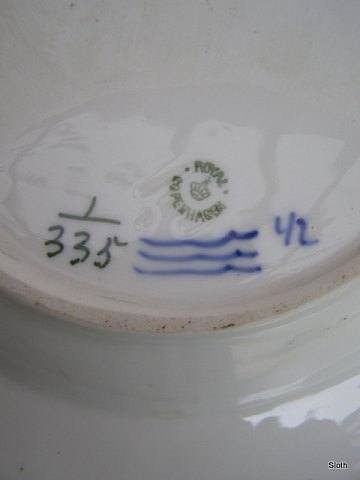 R.C. 1/335 Musselmalet Riflet Fad 1. sort. L: 37,5 cm. B: 30,5 cm. Emne nummer: 12082