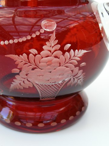 Bömisk rød glas kande, h: 22,5 glas kande, h: 22,5 Emne nummer: 10230k