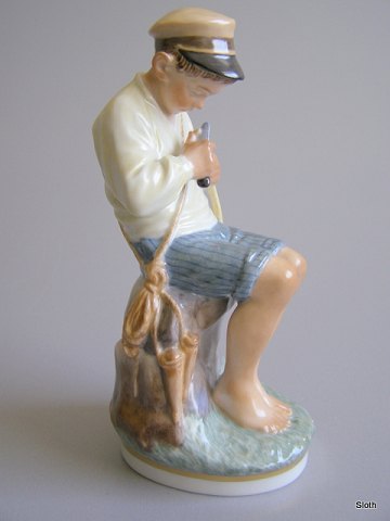 R.C. 1908 Snittende Hyrdedreng i overglasur, Chr. Thomsen Juliane Marie mærket 1. sort. H: 19 cm.