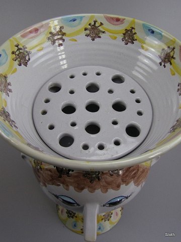 Bjørn Wiinblad Blomsteropsats i form af Kvindehoved med indlagt rist, med lille rep. på næse, H: 39 cm. D: 26,5 cm.