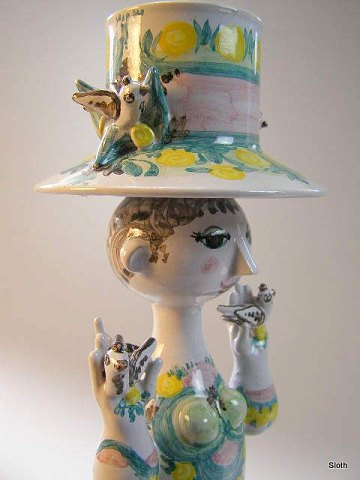 SOLGT Bjørn Wiinblad 2001 Pige med Fugle H: 40,5 cm. Emne nummer: 18082