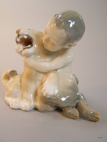 SOLGT R.C. 2852 Faun med Løveunge 1. sort. H: 14 cm. L: 18 cm.