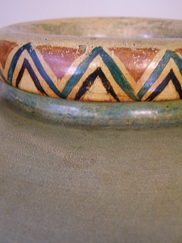 En stor gulvvase af lertøj, bemalet med søbund og fisk, h:49